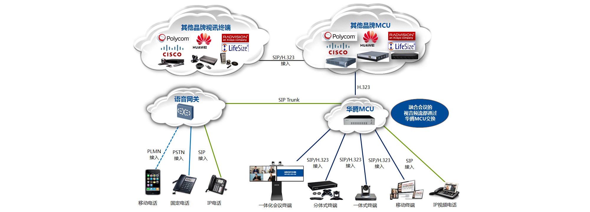會(huì)議系統(tǒng)場(chǎng)景中部署了多個(gè)品牌的視頻會(huì)議設(shè)備,需要互聯(lián)互通。